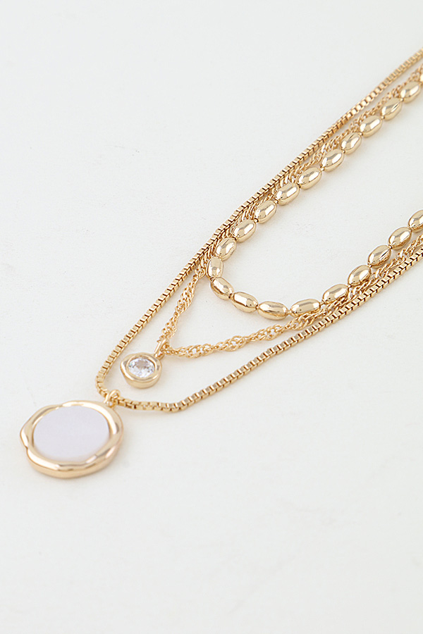 • * This Multi Pendant Drop Chain Necklace from H&D Accessories features a layered design with a textured beaded chain, a delicate link chain, and a slim chain accented with a small sparkling pendant and a circular pendant, creating a delicate, dimensional look. It adds a subtle, feminine touch to a cropped sweater for a weekend brunch or elevates a minimalist blouse for a day at the office, making it a versatile piece for both casual and polished outfits.