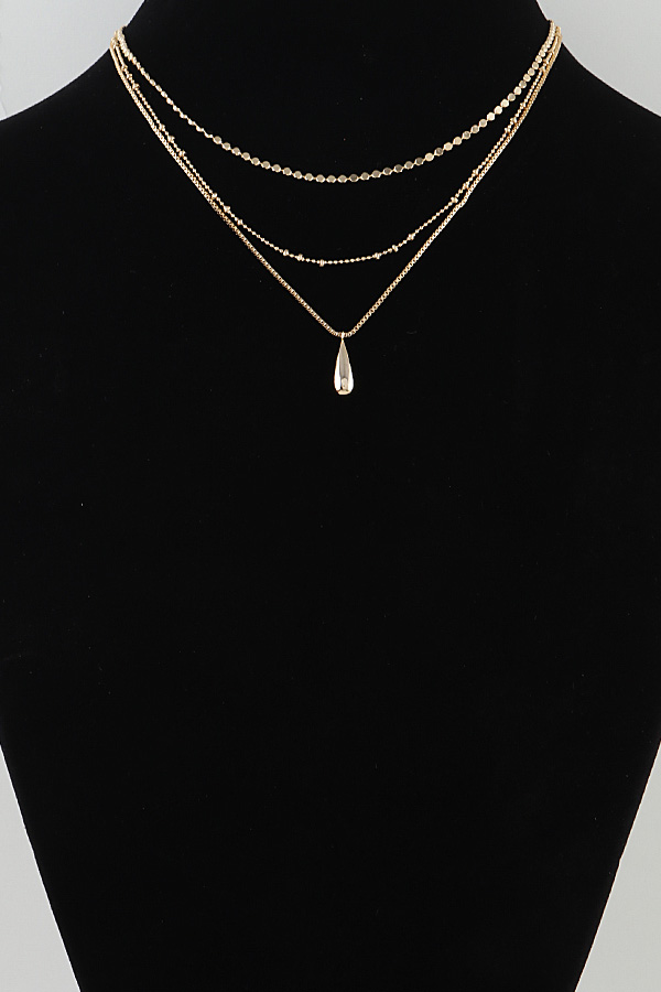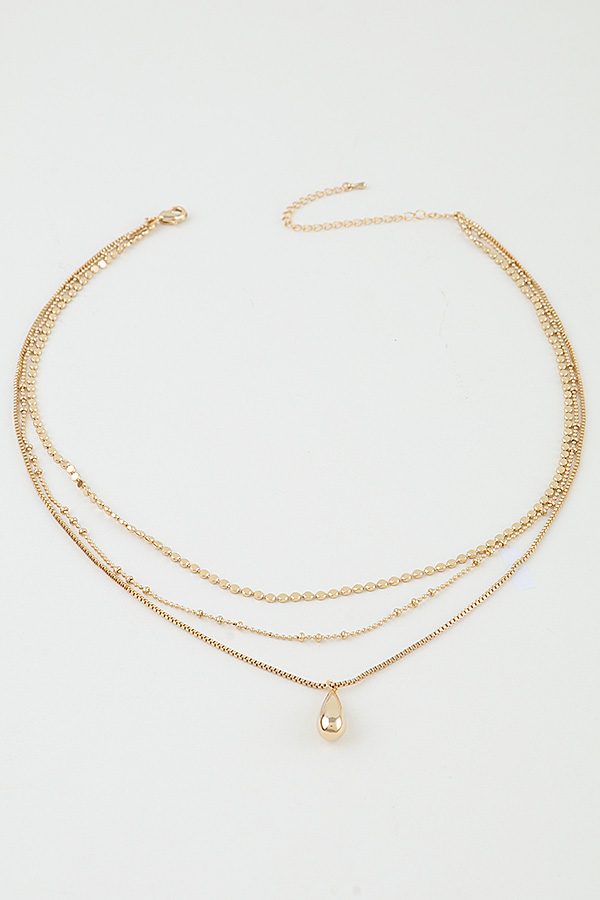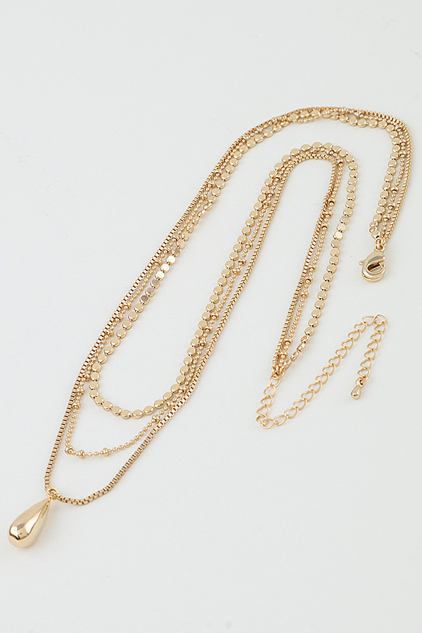 - * This Multi Teardrop Chain Bead Necklace from H&D Accessories features a layered design with delicate beaded chains and a slim finishing chain that suspends a polished teardrop pendant, creating a soft, feminine silhouette. It adds a subtle, elegant touch to a flowy midi dress for a weekend brunch or elevates a minimalist camisole for an evening date, making it a versatile piece for both casual and refined looks.
