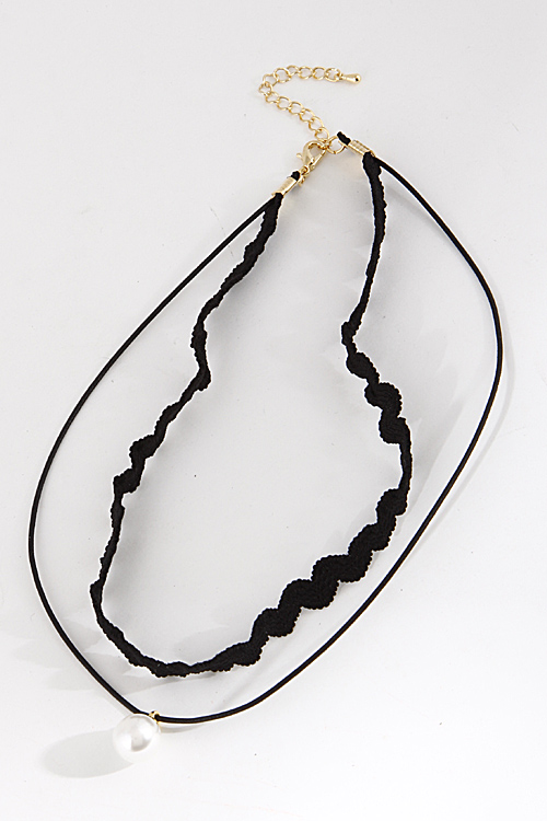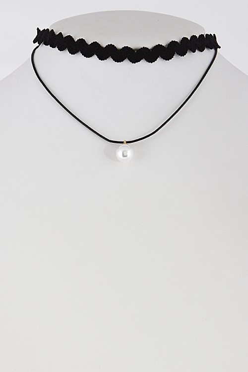 • * Multi Layered Squiggly Choker Necklace With Faux Pearl 6CCD7 * 14" approx.