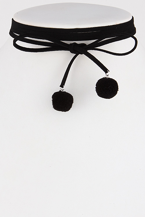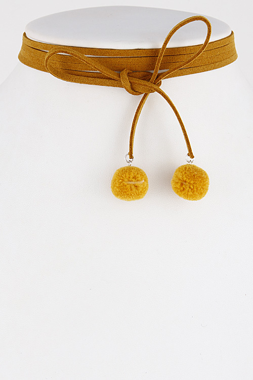 - * Wrap Around Puff Ball Faux Choker Necklace 6JBC8 * 60" approx.