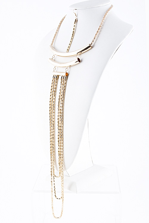 • * Three Layer Chain Fashion Necklace 5GAI6 * 16 x 5" approx.