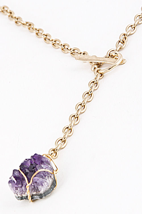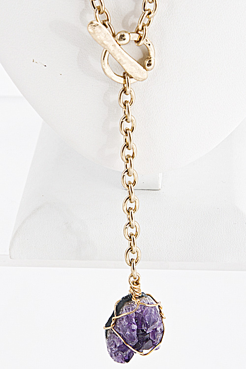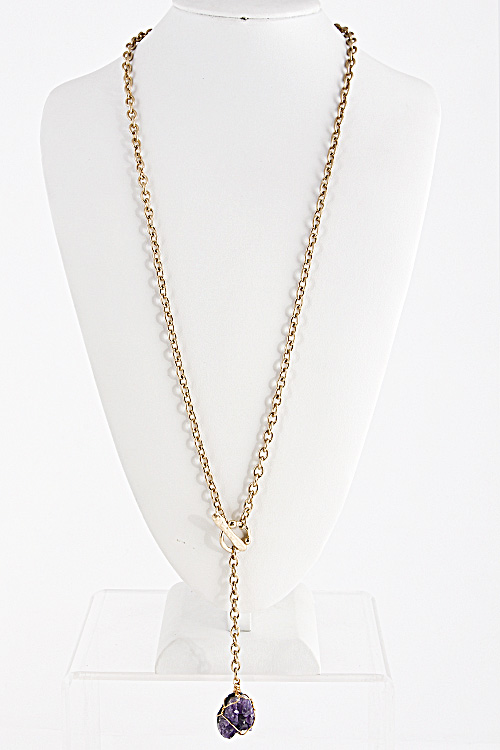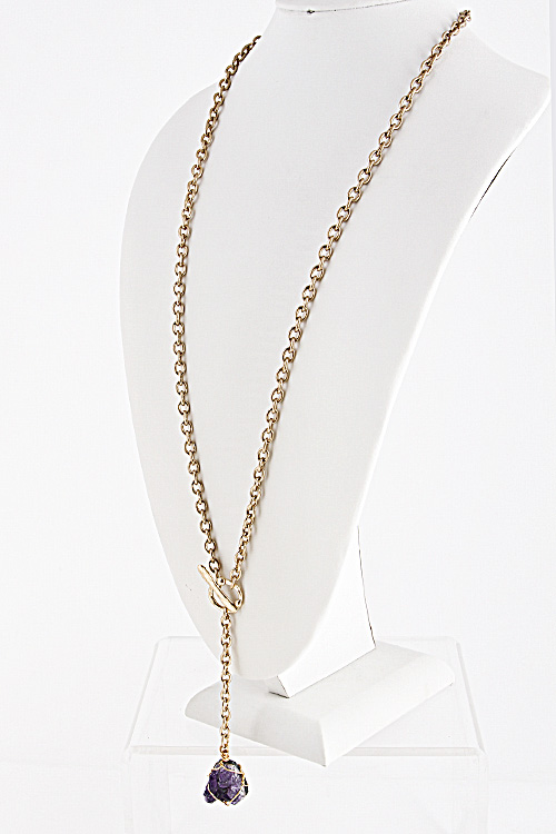 • * Purple Stone Attached Pendant Chain Necklace 5GBG5 * 20 x 2" approx.