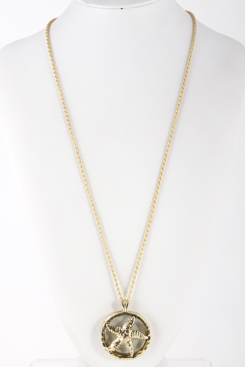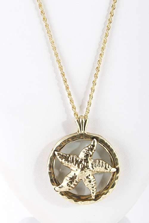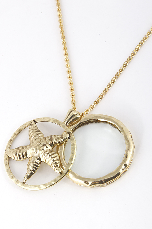 - * Starfish Cutout Magnifying Mirror Necklace 5ACD9 * 30" approx.