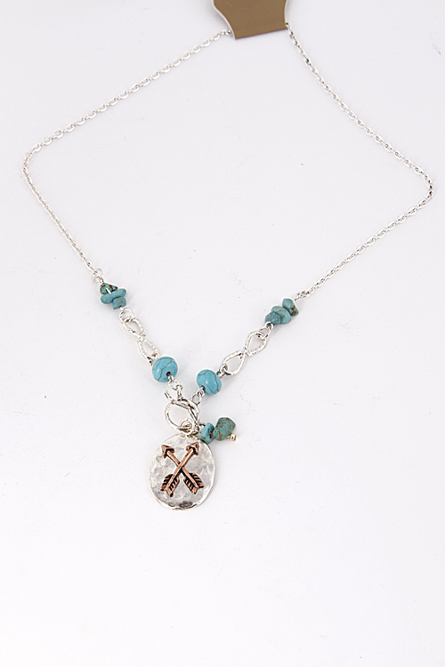 - * Crossed Arrow Drawn Pendant Bead Necklace 5ECA1 * 18" approx.