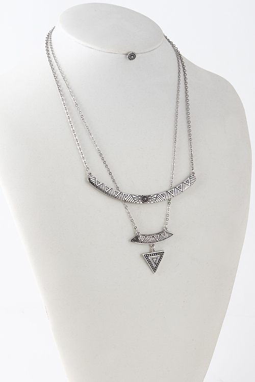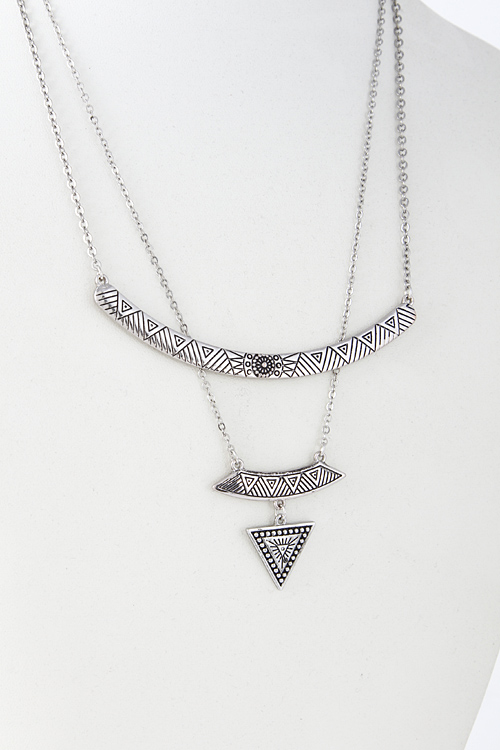 • * Double Chained Triangle Pendant Necklace 5FAI7 * 18" approx.