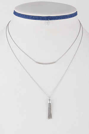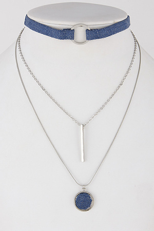 Denim Multi Layer Choker Necklace Set 6JCC10