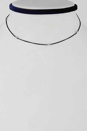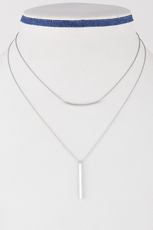 Bar Line Pendant Layer Denim Choker Necklace 6LAB2