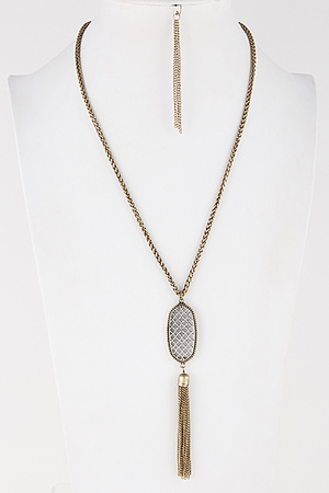 Antique Long Rhinestone Tassel Necklace Set 6JBB1