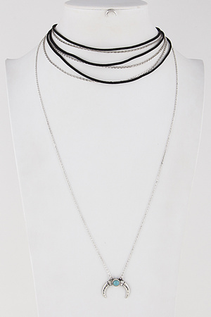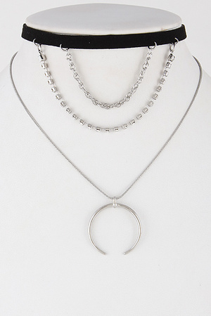 Layered Choker Necklace With Crescent Emblem 7ABD7