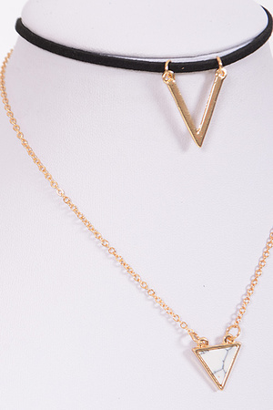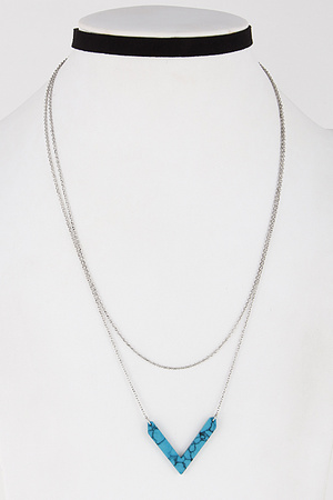 Simple Multi Layer Stone Chevron Choker Set 6JBE3