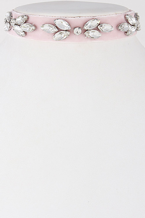 Personable Plain Choker Necklace with Big Rhinestones Attached 6LBC10