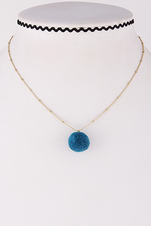 Pom Pom Detailed Denim Choker Necklace 7ABG2