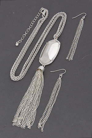 Long Choker Necklace With Fringes Set 6IBF3