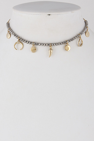 Simple Beaded Choker With Crescent 6ICC7