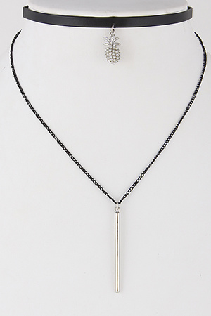 Multi Layer Choker Necklace With Pineapple & Bar 6IBF10