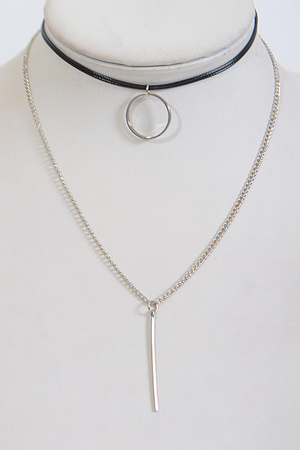 Thin Circle Emblem Multi Layer Bar Choker Necklace