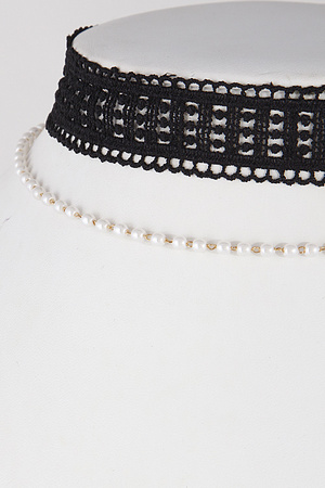Lacy Choker Necklace With Faux Pearl 6IBC9