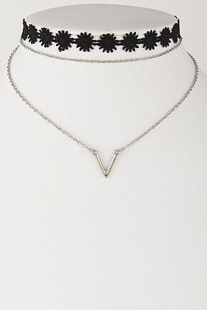 Flower Patterned Choker With Chevron Set 6HCH10