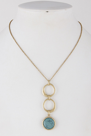 Long Necklace With 3 Hoops And Stone 6ICC7