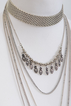 Long Multi Layered Choker Necklace 6GAB7
