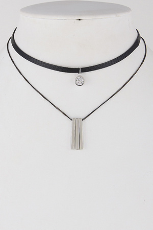 Plain Long Choker Necklace With Bar Set 6GCA3
