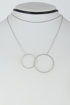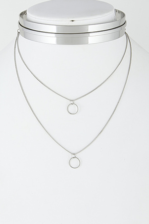 Multi Layer Trendy Choker With Bar And Circle Set 6HAG1