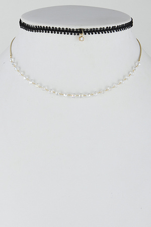 Multi Layer Choker With Beads And Rhinestone 6HCE7