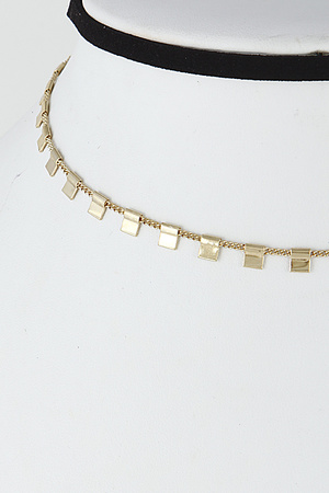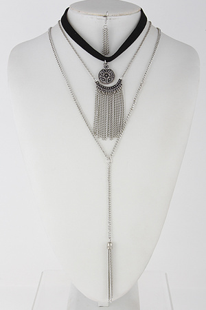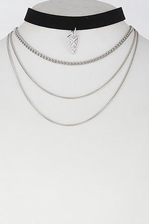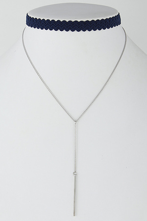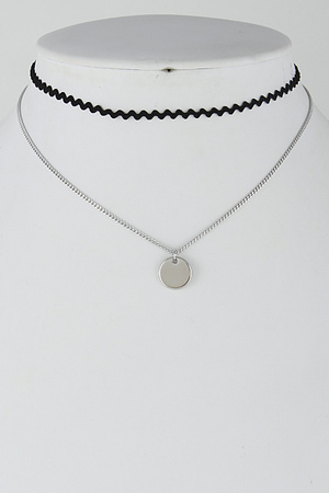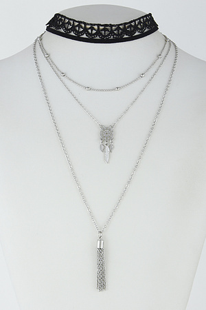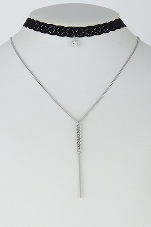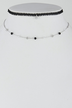 Multi Layer Lacy Solid Choker With Bar Set 6HAC4