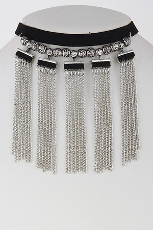 Thin Beaded Multi Tassel Long Choker 6GCF3
