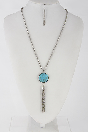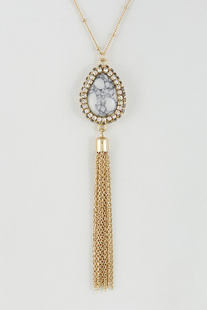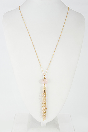 Long Chain Necklace With Stone And Tassel Set 6EAG2