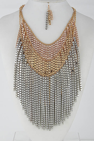 Egyptian Inspired Fringed Statement Necklace Set 6DCE5