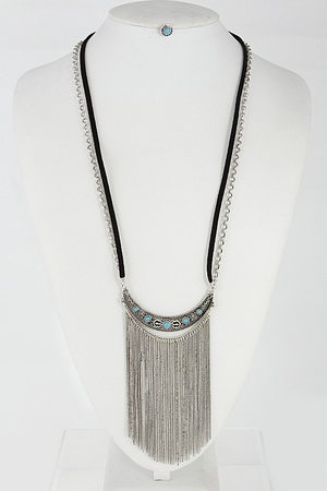 Tribal Inspired Long Necklace Set With Fringes 6DCE10