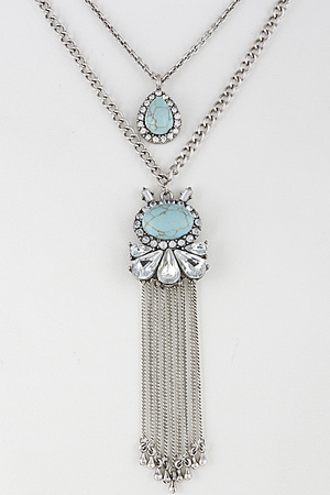 Long Tassel Necklace With Tear Drop Stone Necklace Set 6DCF8