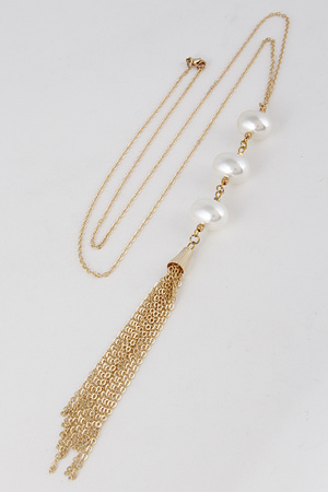 Long Faux Pearl Necklace With Tassel 6FBG7