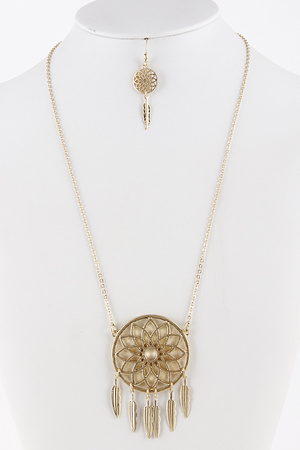 Feather Dangle Dream Catcher Chain Necklace 5DAJ16