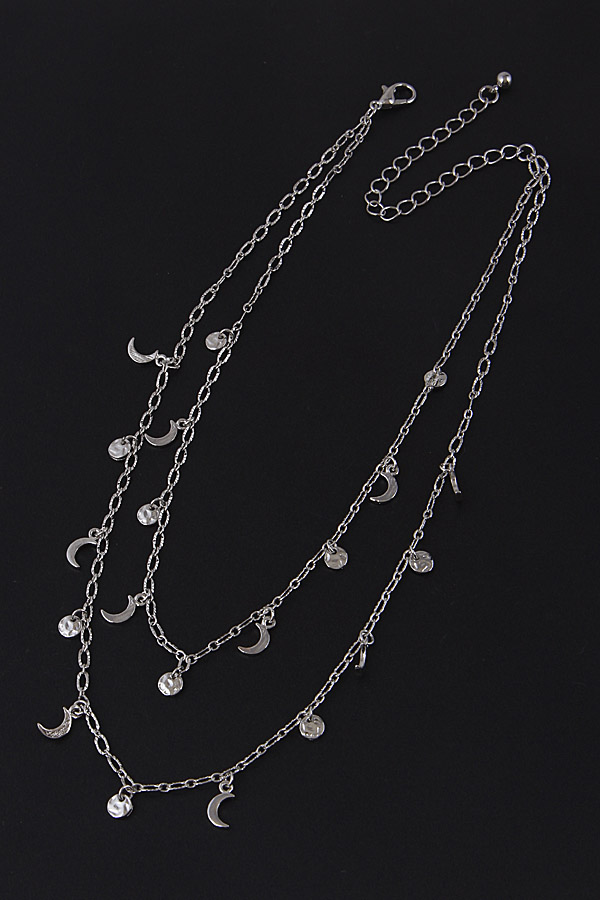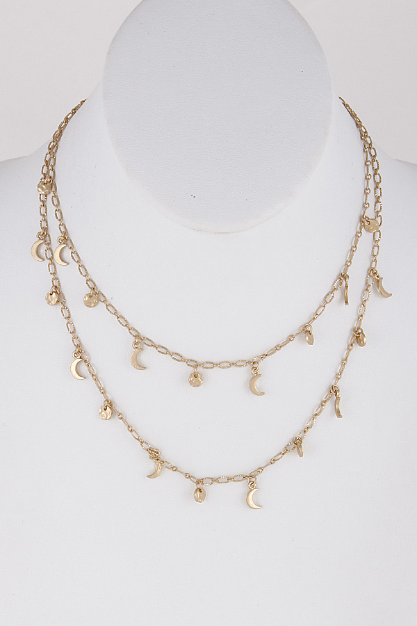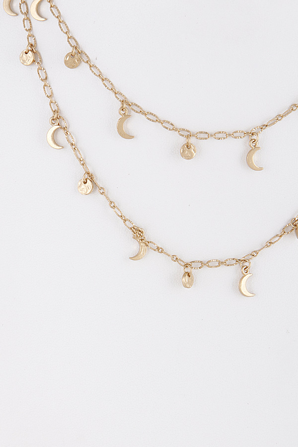 - * Layered Necklace With Moon Pendant Details 8LCA6