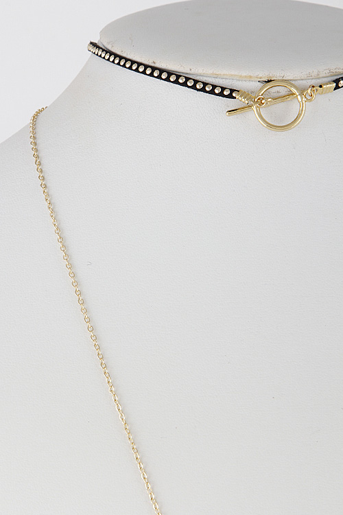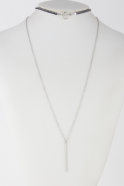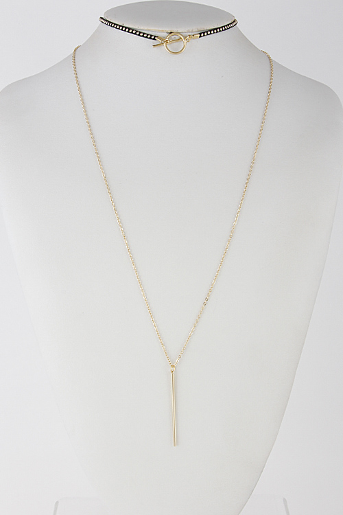• * Long Stud Thin Choker With Bar 6GBJ5 * 12" approx. * 26" approx.