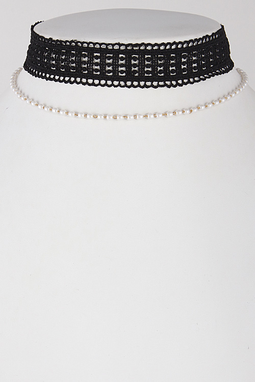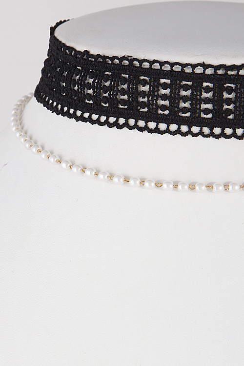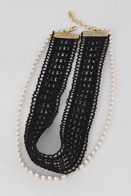 • * Lacy Choker Necklace With Faux Pearl 6IBC9 * 1 x 12" approx.