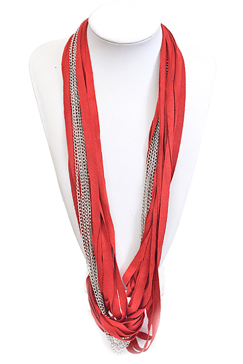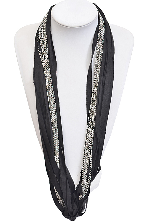 • * Multiple Chain Cloth Tangled Statement Necklace * 22" approx.