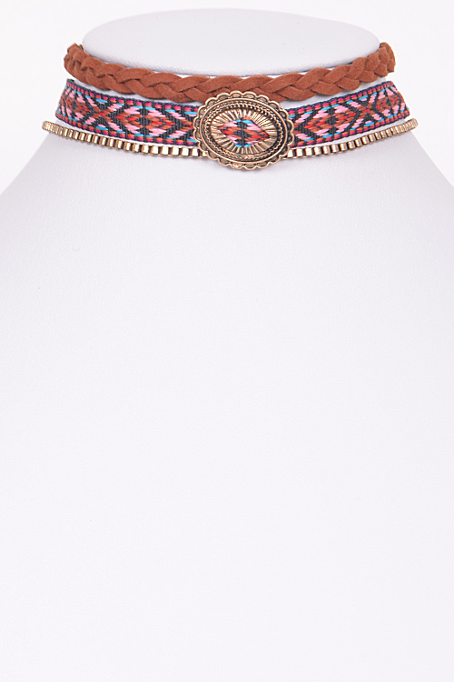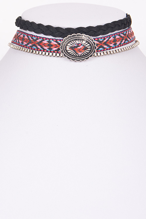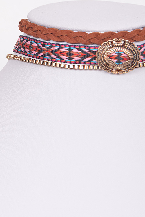 • * Aztec Inspired Choker Necklace Set * 14.75 x 0.4" approx. * 14.75 x 0.25" approx. * 15" approx.