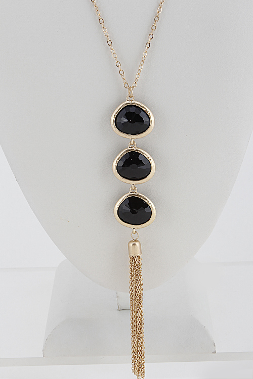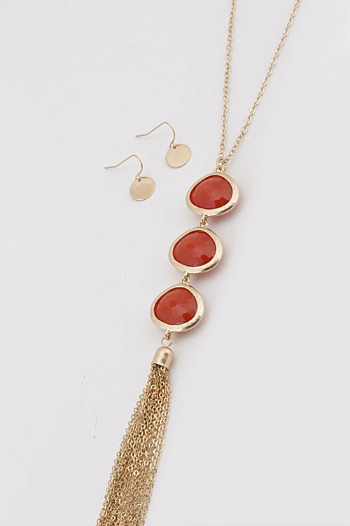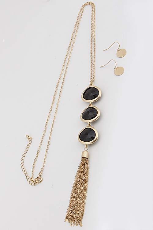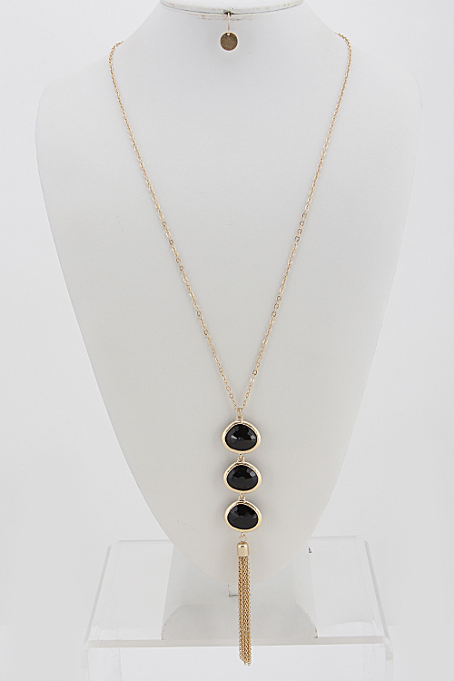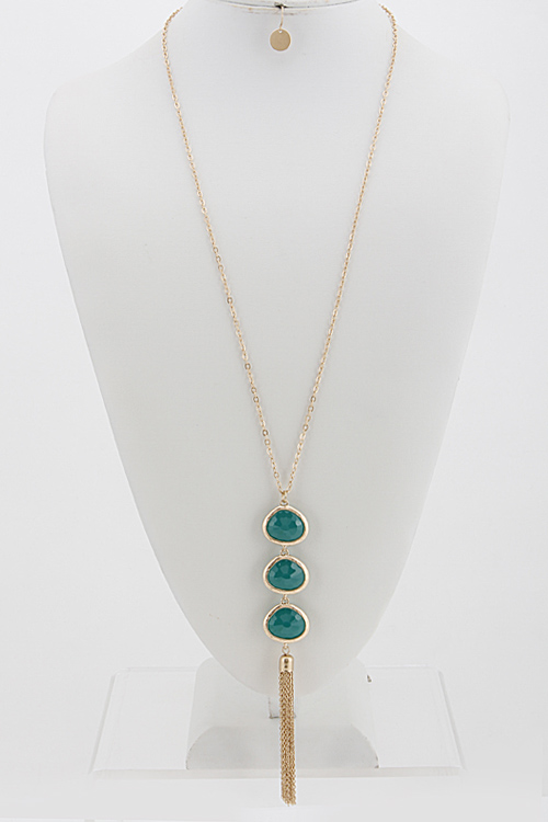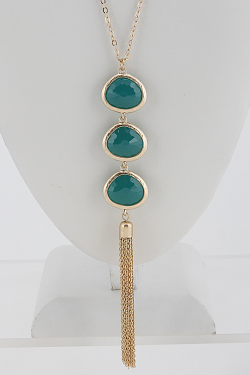 • *Three Oval Stone Drop Necklace Set 6AAC7