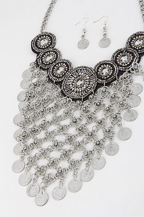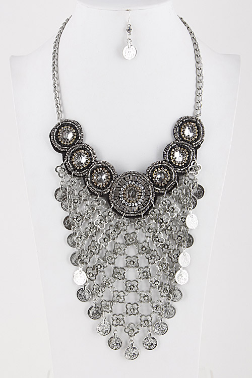 - * Flower and Coin Statement Earring Set 5ICI8 * 6.5X14" approx.