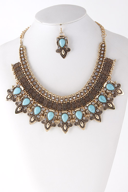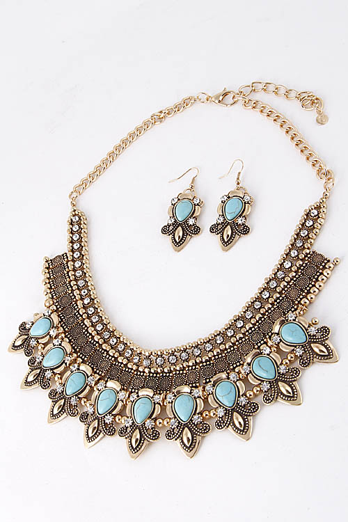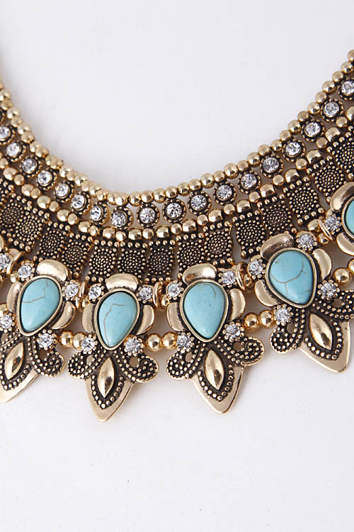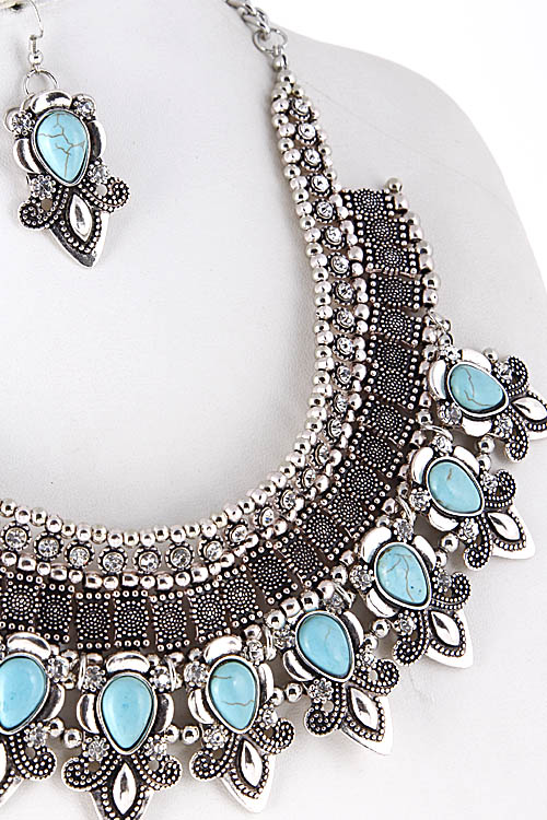 - * Rhinestone Bead Linked Teardrop Stone Detailed Necklace 5EBF * 16 x 2.5" approx.
