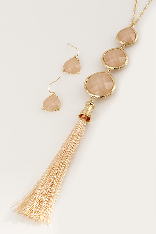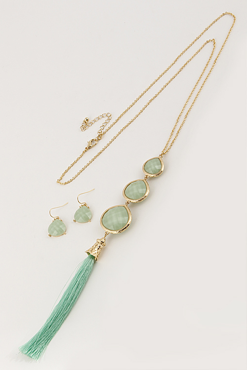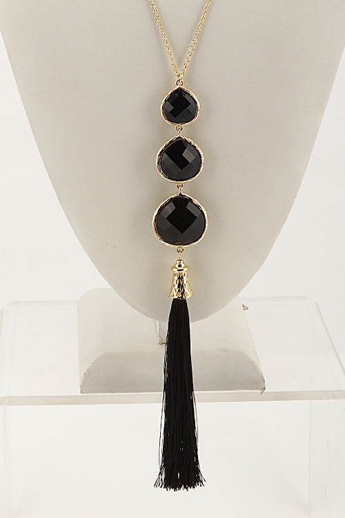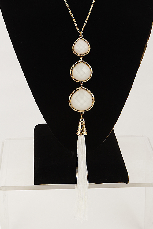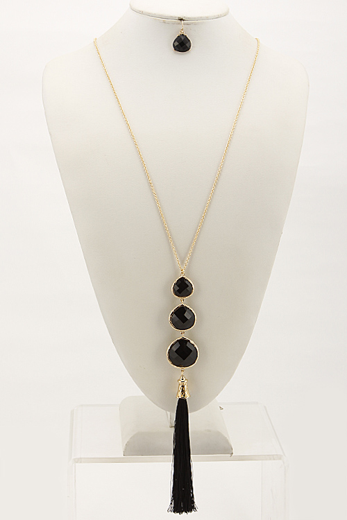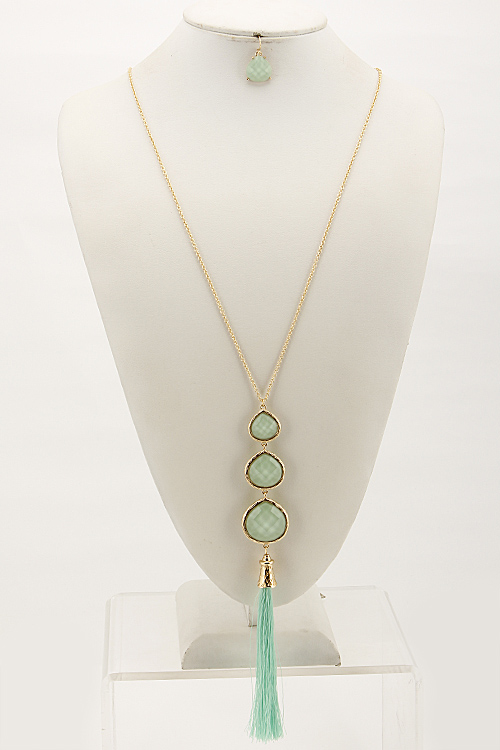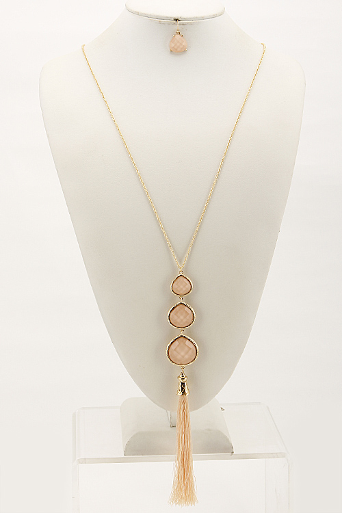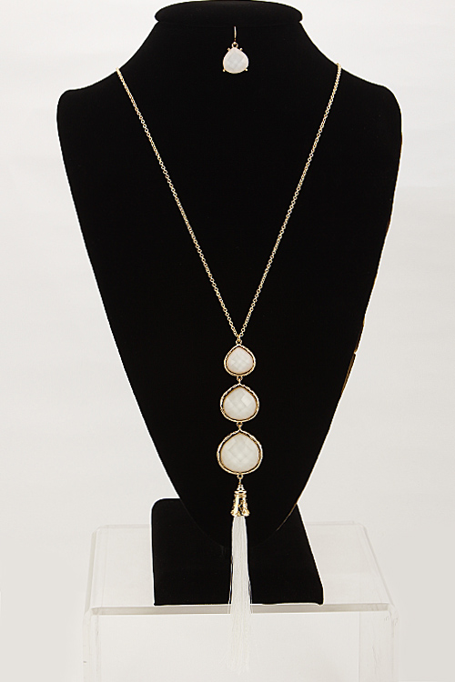 - * Three Tear Drop Long Necklace Set With Tassel Attachment 6BCE10 * 28 x 8.5" approx.