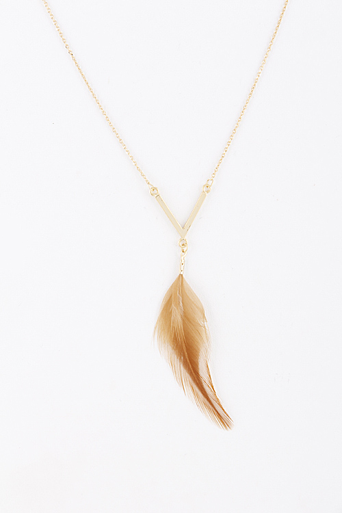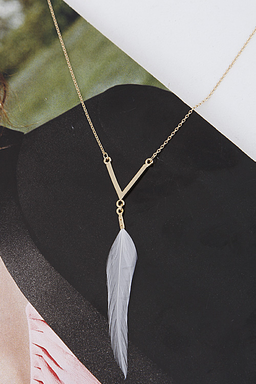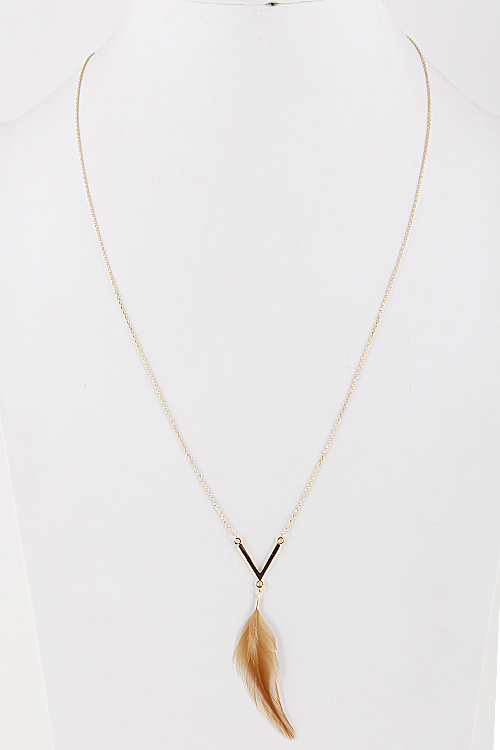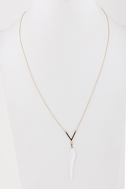 • *Feather Pendant Necklace with V Drop Detail 5JAE10 * 28" approx.