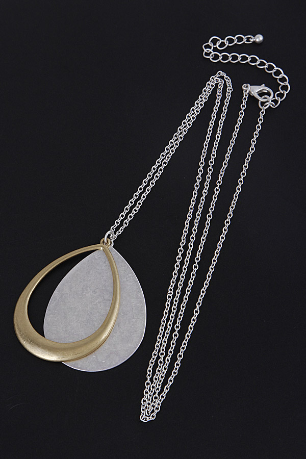 - * Teardrop Flat Metallic Long Necklace 7JCB6