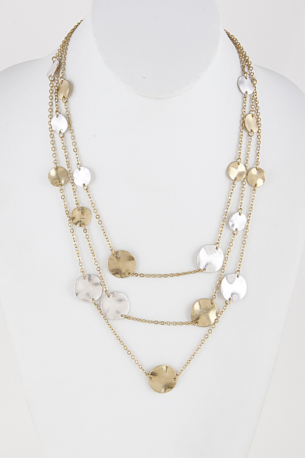 - * Hammered Mixed Coin Pendant Layered Necklace 8JAD10