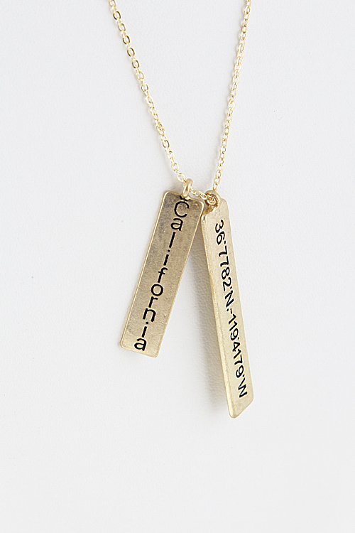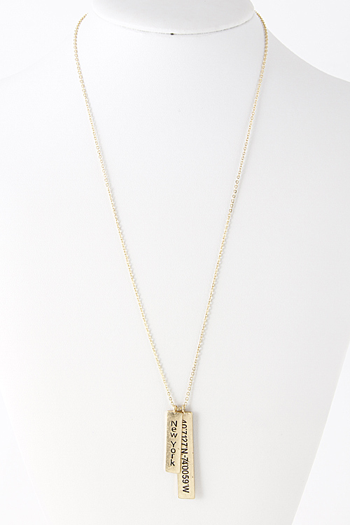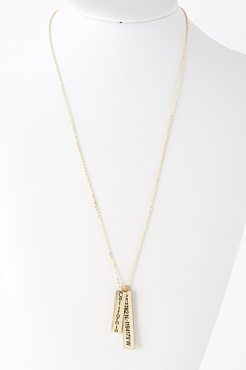 • * Double State Coordinates Flat Bar Pendant Necklace 5FBJ3 * 24 x 2" approx.