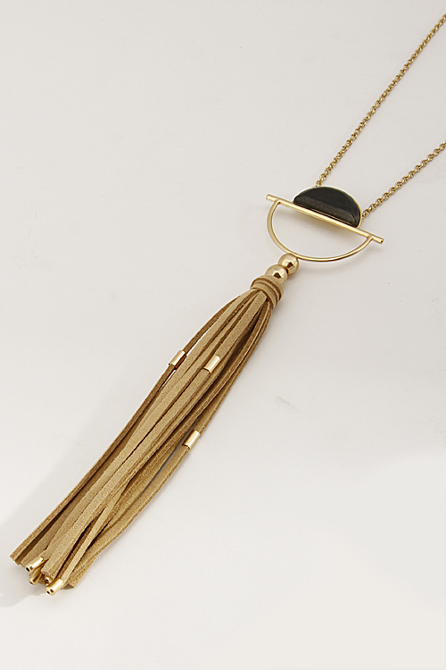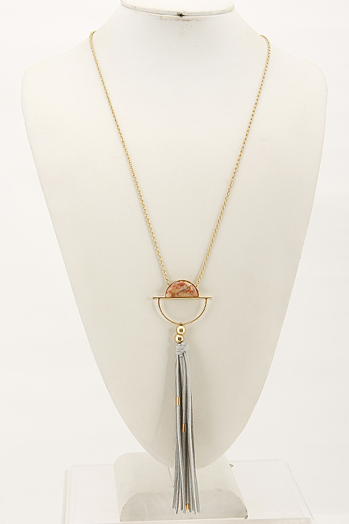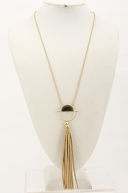 - * Long Half Crescent Necklace With Tassel And Stone 6CAB3 * 26 x 7" approx.