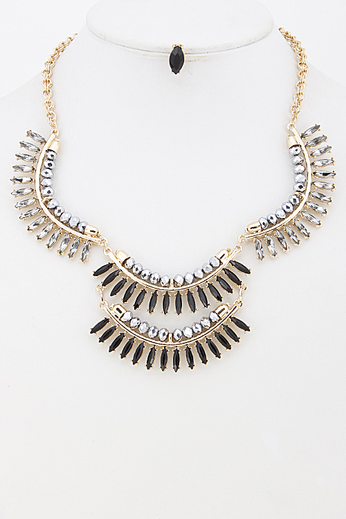 - *Egyptian Style Rhinestone Necklace Set 5KAF3 * 14 x 2" approx.